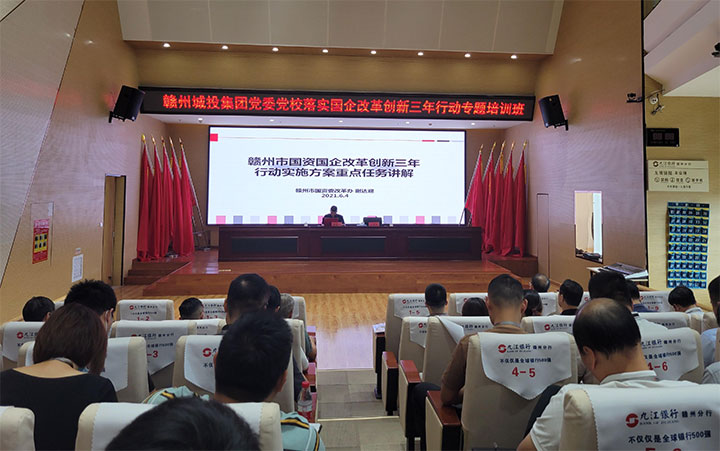 6月23日下午,贛州城投集團(tuán)黨委黨校舉辦落實(shí)國(guó)企改革創(chuàng)新三年行動(dòng)專題培訓(xùn)班,集團(tuán)黨委委員、總工程師王遠(yuǎn)平,黨委委員、紀(jì)委書記曾富有出席,市國(guó)資委宣教科科長(zhǎng)謝達(dá)迎應(yīng)邀作專題輔導(dǎo),集團(tuán)全體中層管理人員,相關(guān)部門、子公司人員共計(jì)70余人參加培訓(xùn)。