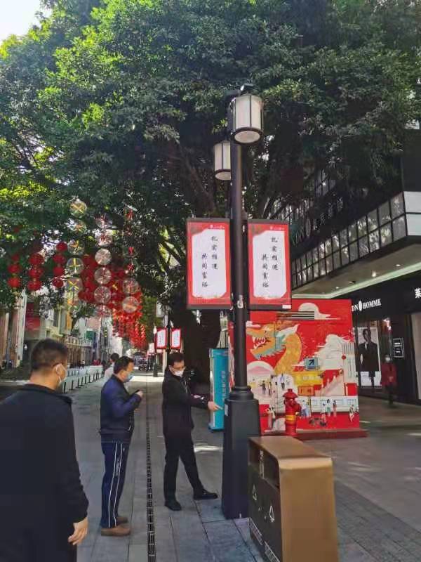 25日,考察組到廣州市北京路歷史文化街區(qū)調(diào)研由廣州無線電集團(tuán)旗下子公司負(fù)責(zé)建設(shè)的智慧燈桿項目