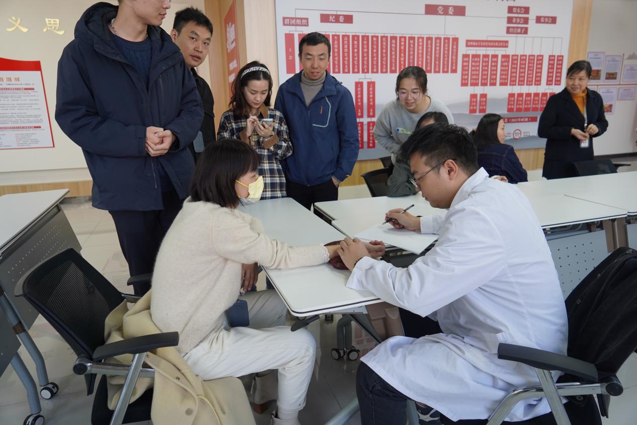 本次義診活動采取一對一問診模式,醫(yī)護人員為就診員工進行把脈、聽診、測血壓血糖等常規(guī)檢查,根據(jù)實際癥狀進行了手診、面診、舌診、脈診等針對性檢查。此次活動還提供了拔罐、推拿按摩、經絡調理、穴位療法等健康服務,并科普疾病預防、中醫(yī)養(yǎng)生保健等知識。