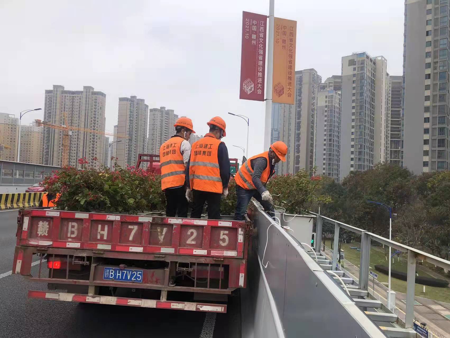 12月25日一大早,在贛南大道快速路與東江源大道快速路互通立交,贛州城投集團(tuán)分了5組20人,對(duì)在現(xiàn)場(chǎng)的三角梅進(jìn)行遷移。贛州城投集團(tuán)的工作人員介紹說(shuō):“遷移的時(shí)候,我們要特別注意對(duì)花箱及三角梅成品的保護(hù),同時(shí),我們采取了設(shè)置安全錐、安全導(dǎo)向牌等措施,確?,F(xiàn)場(chǎng)施工安全?!?/span>